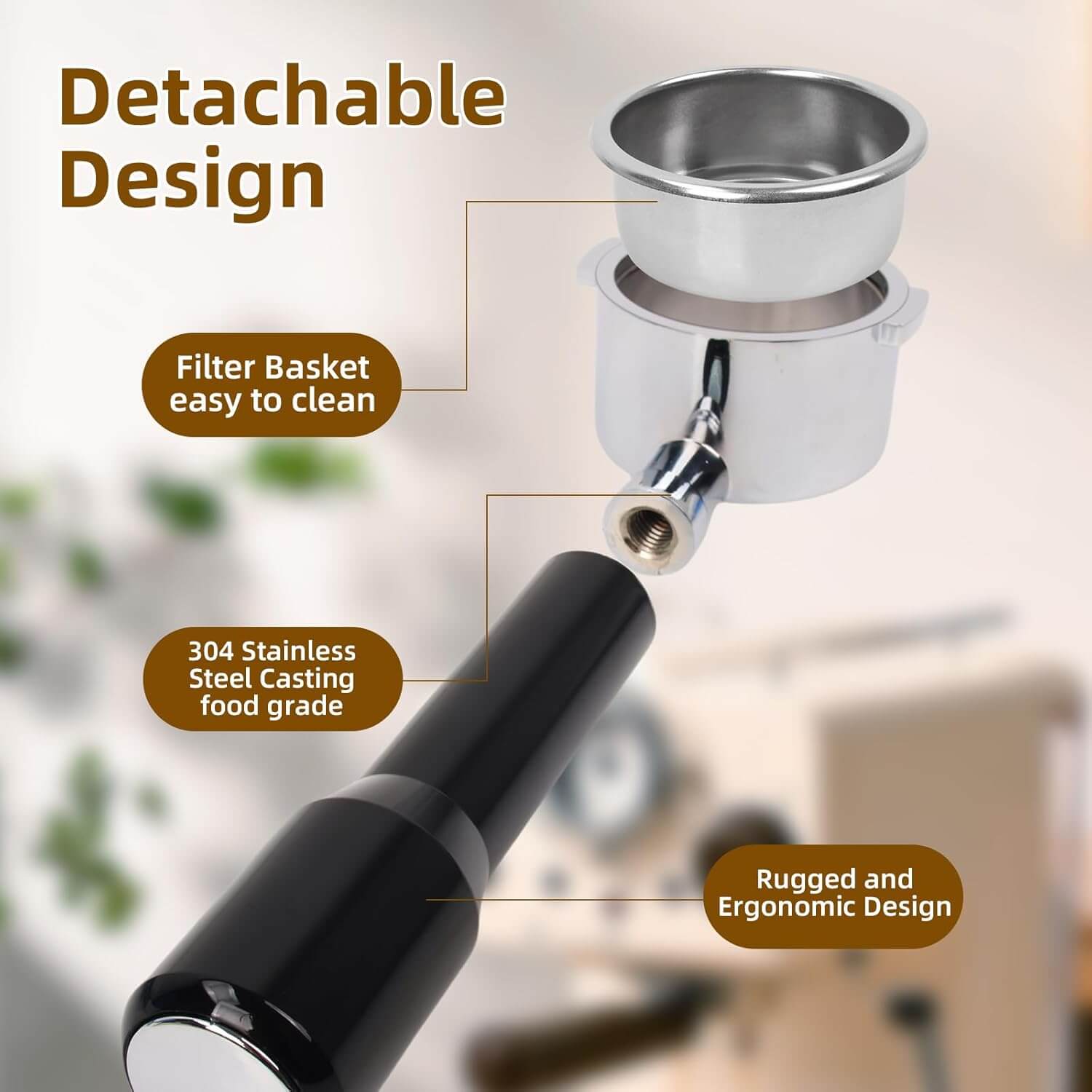 - Bezpieczeństwo i Trwałość: Wykonany z bezpiecznej dla żywności stali nierdzewnej, która jest odporna na korozję i łatwa do czyszczenia. Uchwyt z naturalnego litego drewna (pogrubiony) zapewnia wygodny i stabilny chwyt oraz dodaje elegancji Twojej stacji baristy.