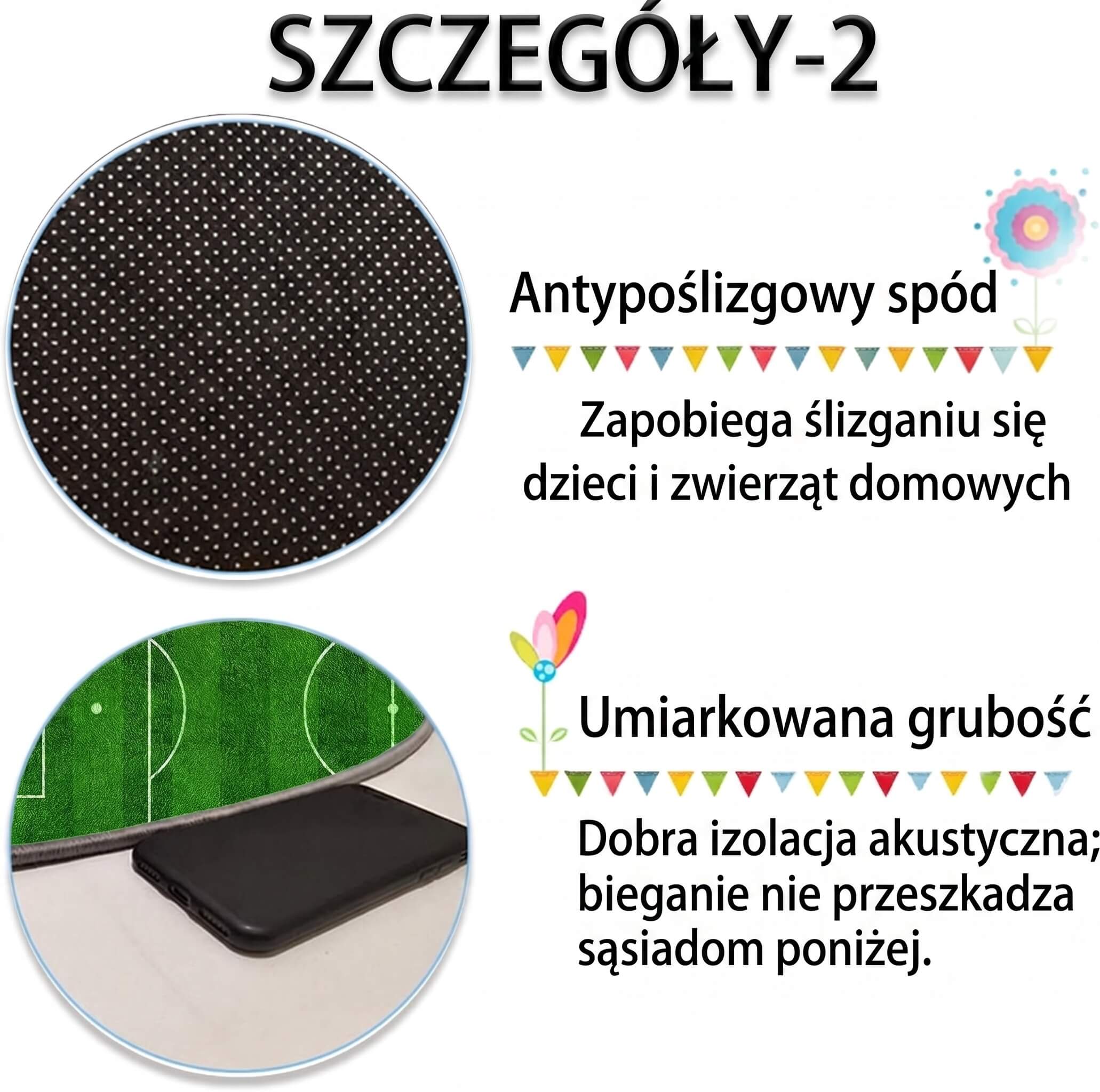 Przenieś prawdziwą murawę prosto do pokoju swojego dziecka! Szukasz idealnego dodatku do pokoju małego fana piłki nożnej? Dywan z motywem boiska piłkarskiego to spełnienie dziecięcych marzeń i doskonała przestrzeń do codziennej zabawy. Wyobraź sobie, jak Twoja pociecha rozgrywa emocjonujące mecze swoimi figurkami, biega, skacze lub po prostu relaksuje się na własnej, prywatnej arenie sportowej. To nie tylko dekoracja – to zaproszenie do aktywnej i rozwijającej zabawy!