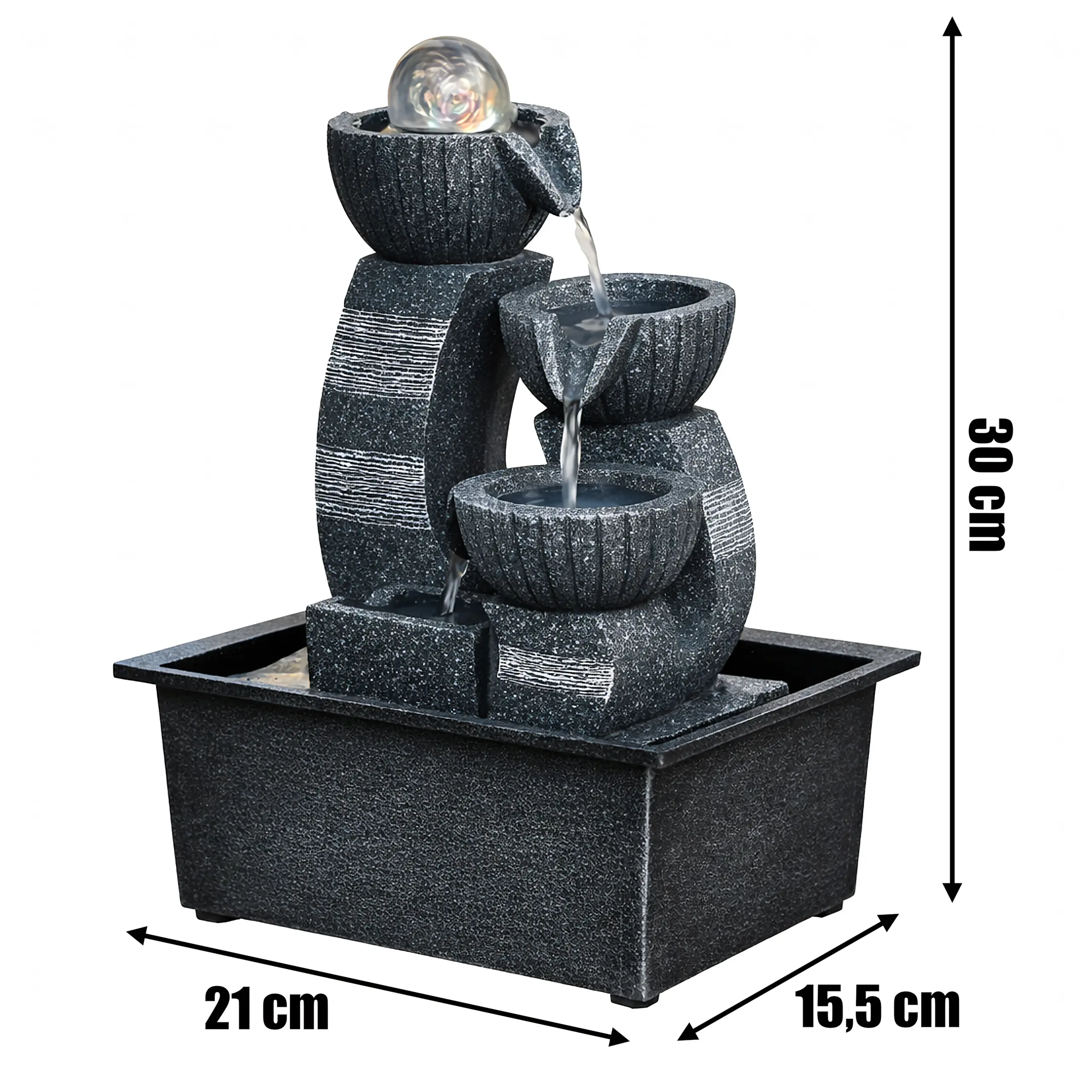 Fontanna Stołowa Ozdobna Ogrodowa na Stół Dekoracyjna Led 30×15,5×21 cm