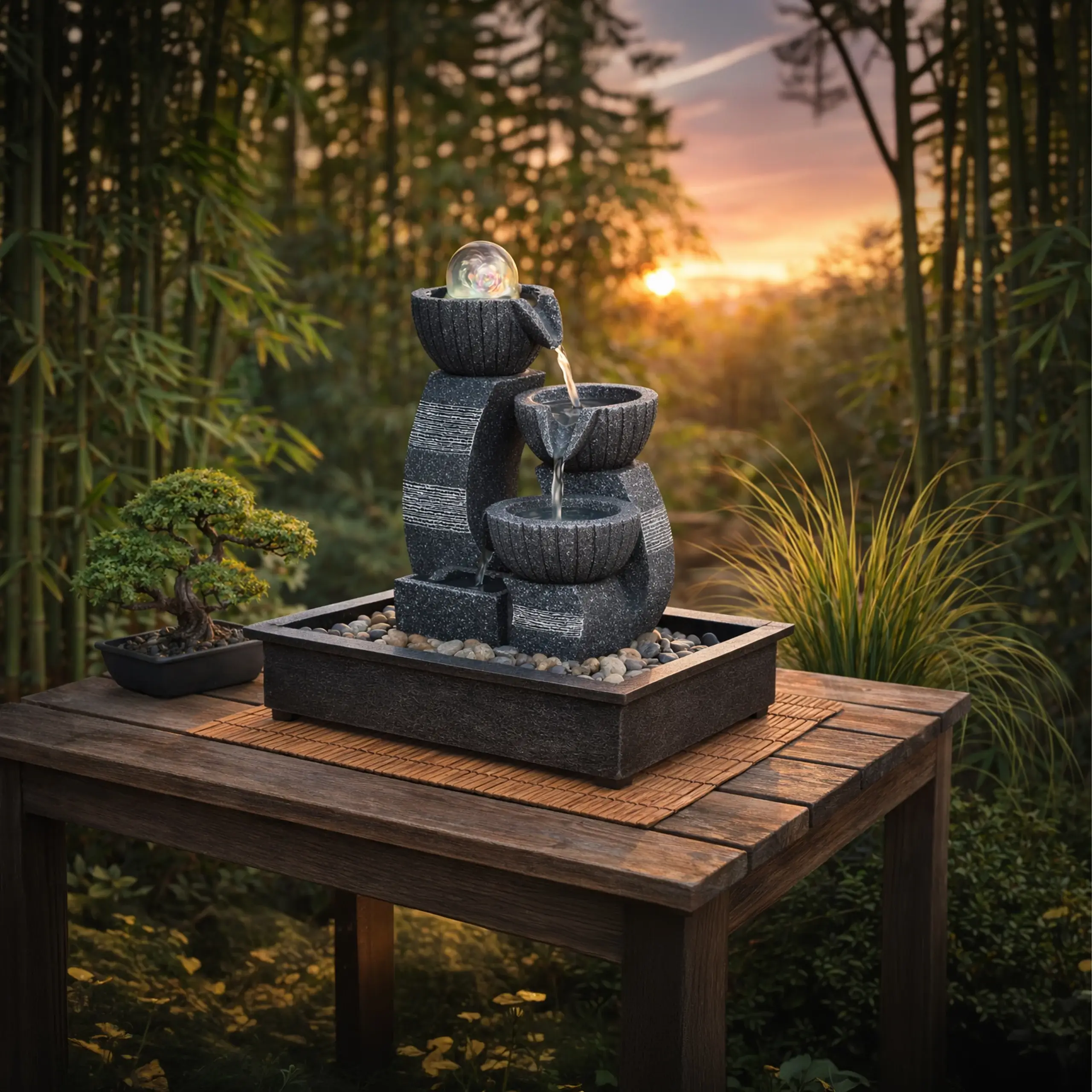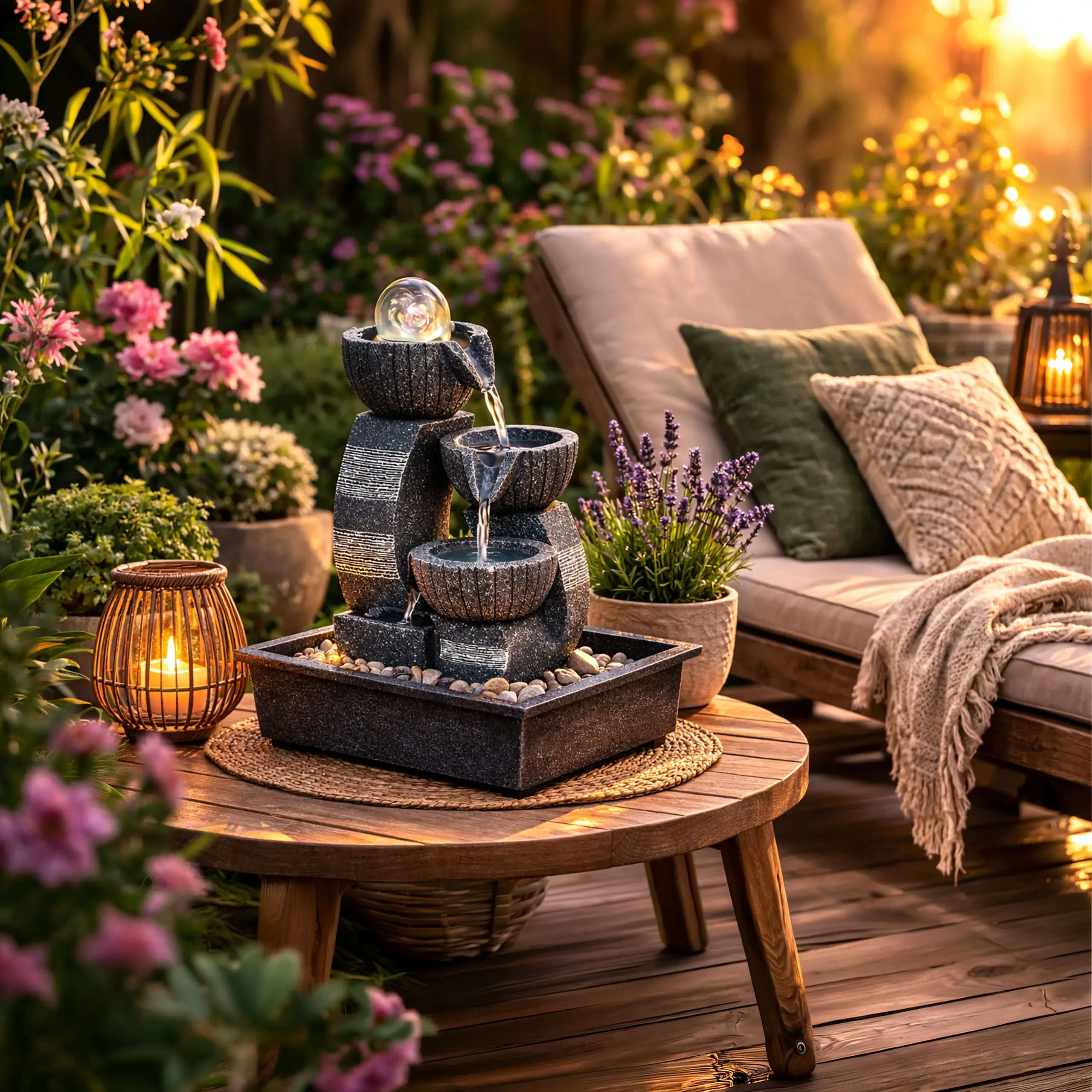 Poprawa mikroklimatu: Fontanna działa jak naturalny nawilżacz powietrza, co docenisz szczególnie w sezonie grzewczym.