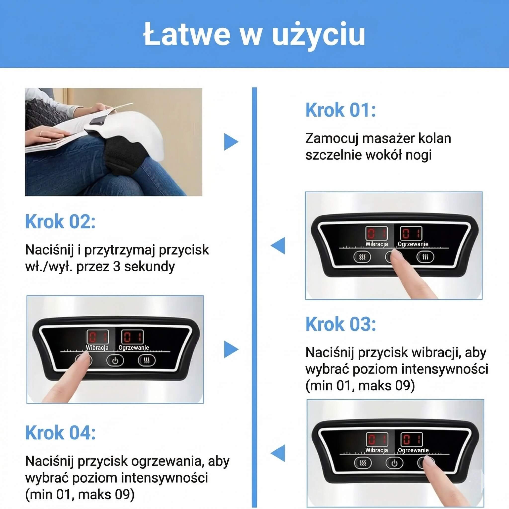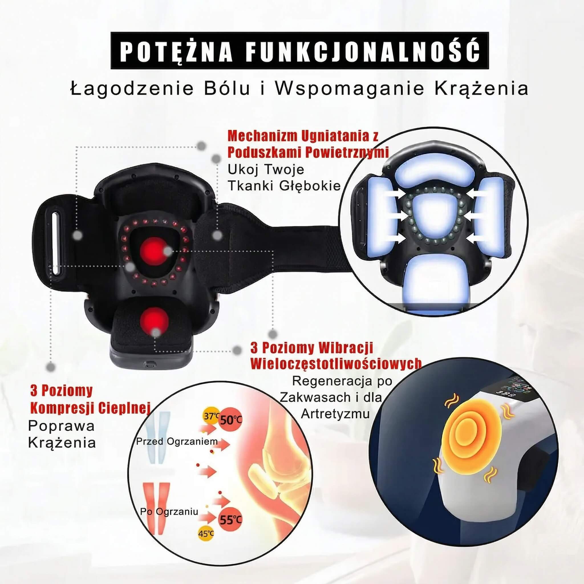 Inteligentny Masażer Stawów 4w1: TENS, Podczerwień, Wibracje i Grzanie (Kolana, Łokcie, Barki)