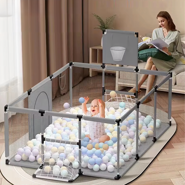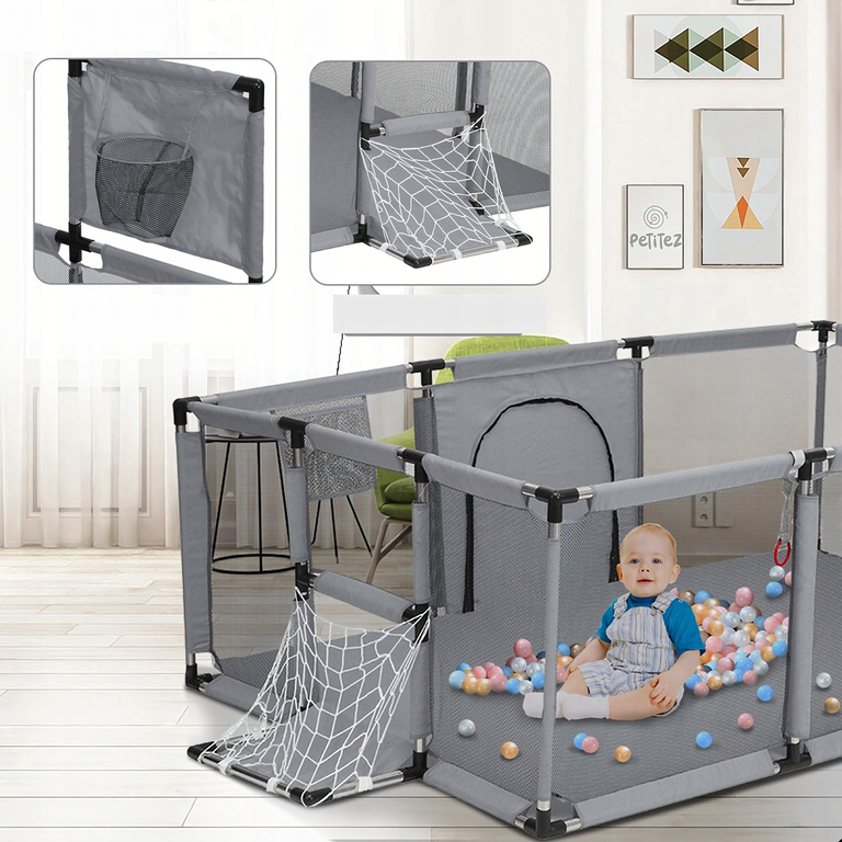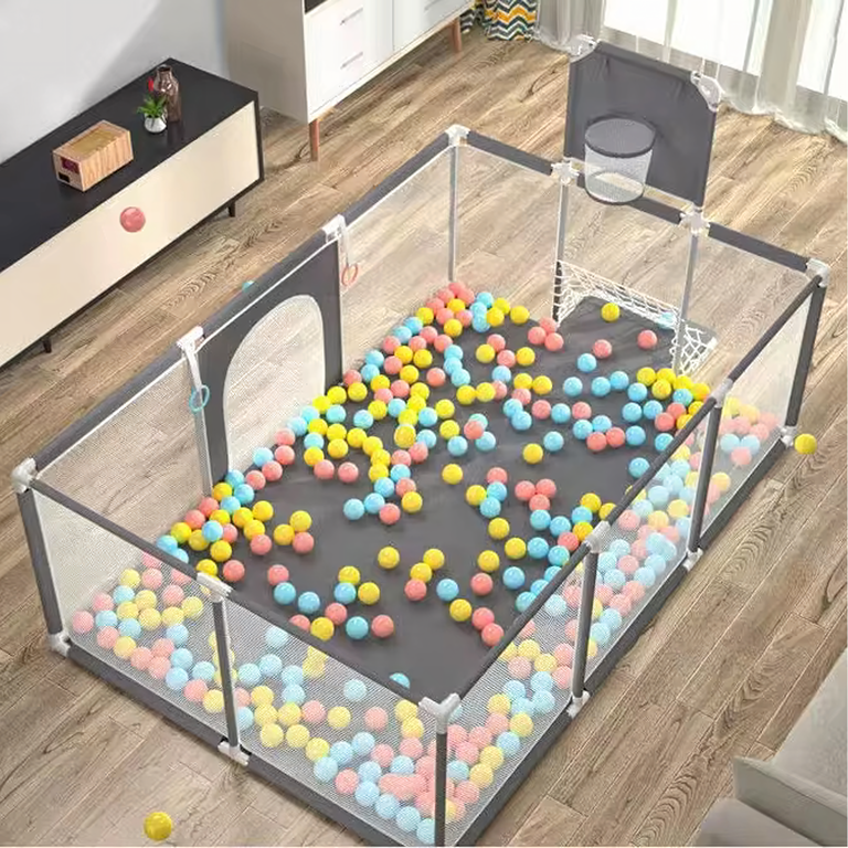 Duży Kojec Plac Zabaw 3w1 z Suchym Basenem, Bramkami i Koszem – Idealny dla Rozwoju Dziecka