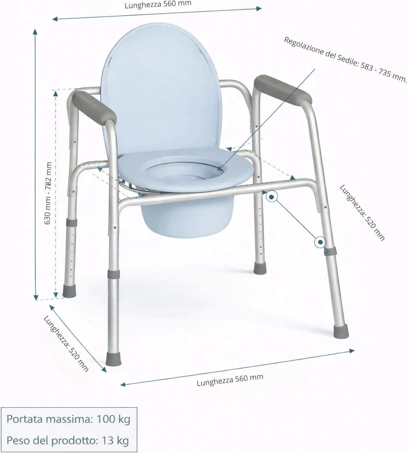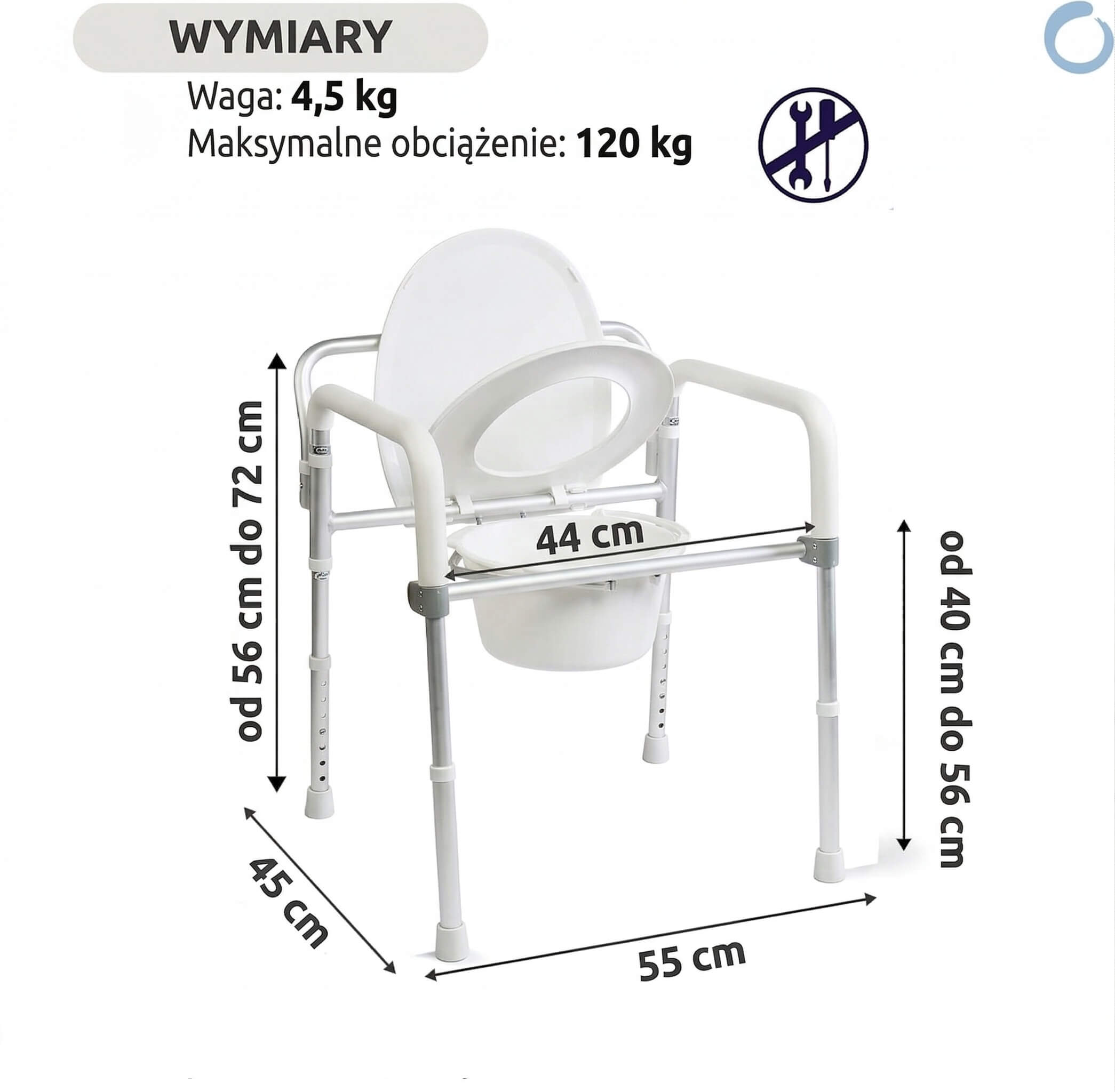 Wielofunkcyjne Krzesło Toaletowe i Prysznicowe 4w1 – Składane, Aluminiowe