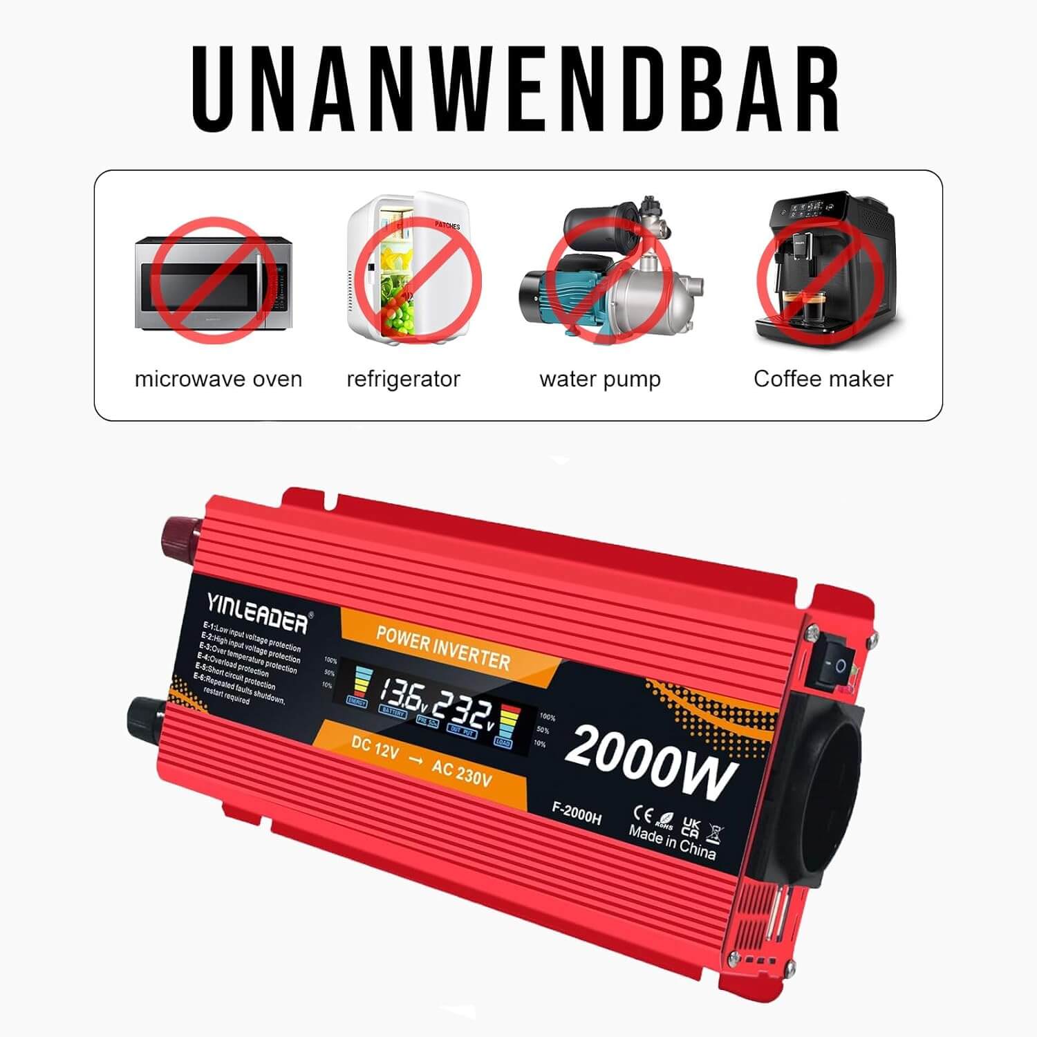 Przetwornica Napięcia Z Wyświetlaczem LCD 2 USB 2000 W