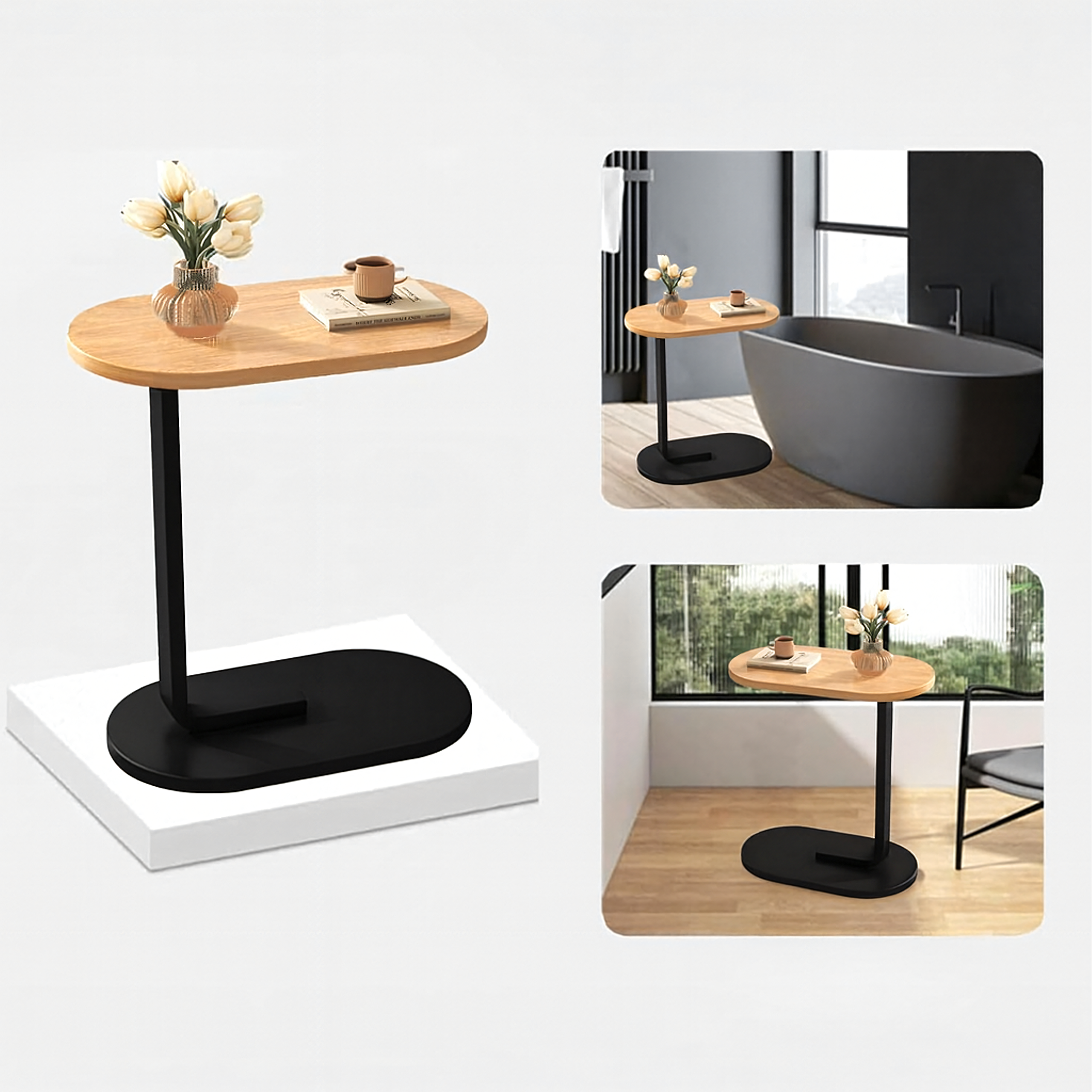 Jasny stolik kawowy w kształcie litery C to nowoczesny, kompaktowy mebel idealny do salonu, sypialni czy biura. Dzięki swojej formie łatwo wsuniesz go pod kanapę lub fotel, zyskując wygodne miejsce na kawę, laptopa czy dekoracje. Stylowy, lekki i funkcjonalny – pasuje do każdego wnętrza.