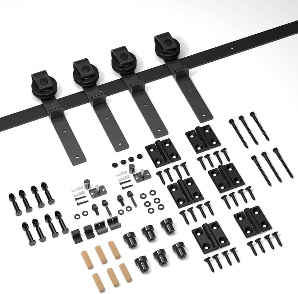 (Uwaga: Zestaw zawiera wyłącznie okucia i prowadnicę. Skrzydła drzwiowe nie wchodzą w skład zestawu).